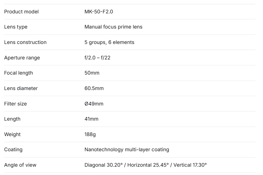 ◆ Meke 50mm F2.0 aperture is designed by a circle, the max aperture F2.0 can help you to build blur picture.