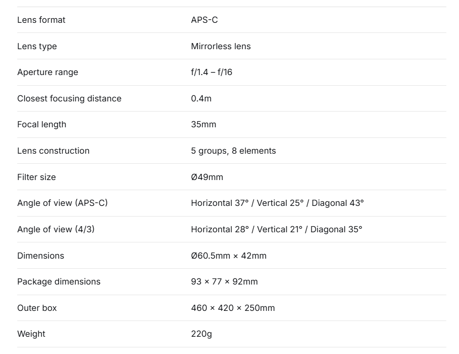 ◆ This 35mm F1.4 lens is a manual focus lens with smooth focus and excellent hand feel. It has a circular aperture blade with a maximum aperture of F1.4, which creates a beautiful blur effect in the photo. Super multi-layer coating process, excellent image quality. The body is very compact, all metal body, precision machining, durable