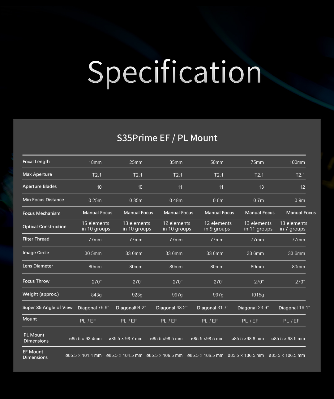 ◆ Aperture Range: T2.1-T22